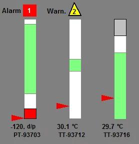 Alarms are more manageable as well. Often an operator can become overwhelmed by alarms. By using icons and colors to indicate the severity of an alarm, an operator can quickly decide which alarms are the most important to react to.